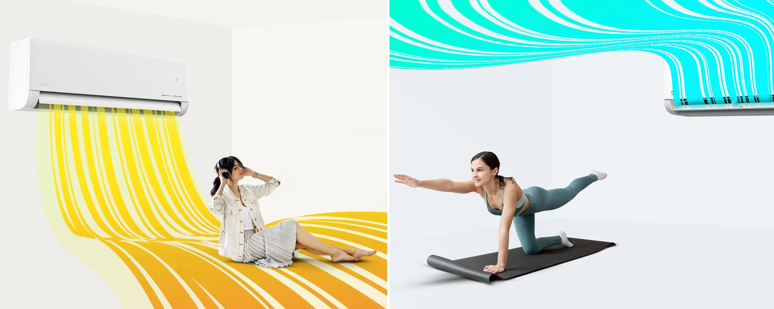 Naujoji mentelių konstrukcija pasižymi išplėstu pasvirimo kampu – net iki 180°, palyginti su maždaug 70° tradiciniuose oro kondicionieriuose. Dėl to įrenginys gali automatiškai reguliuoti mentelių pasvirimo kampą ir ventiliatoriaus greitį pagal nustatytą režimą, užtikrindamas greitą ir tolygų viso kambario šildymą arba vėsinimą. Platus judėjimo diapazonas leidžia pasirinkti vertikalią arba horizontalią oro srauto kryptį ir ją lengvai pritaikyti pagal individualius poreikius.