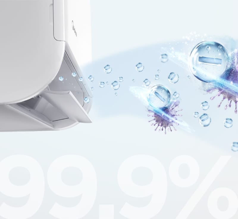 Integruotas jonizatorius pašalina iki 99,9 % virusų ir bakterijų, įskaitant Staphylococcus aureus, Escherichia coli, H1N1 ir Enterovirus 71, užtikrindamas švaresnį ir sveikesnį orą jūsų šeimai bet kuriuo metų laiku. Mėgaukitės kondicionavimo ir oro valymo funkcijomis viename įrenginyje.
