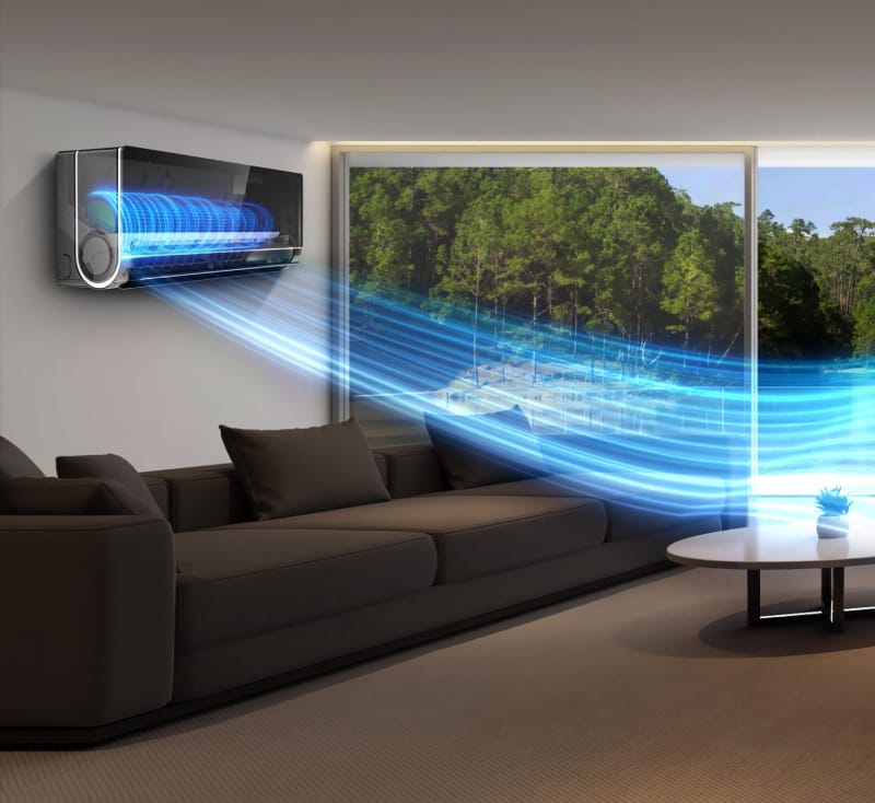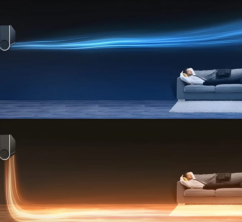 Speciali oro nukreipimo sistema ir didelės ventiliatoriaus mentės leidžia tiekti daugiau oro su mažesniu triukšmu nei įprasti modeliai. Dėl to oras toliau ir tolygiau paskirstomas po patalpą, o įrenginys išlieka tylus.