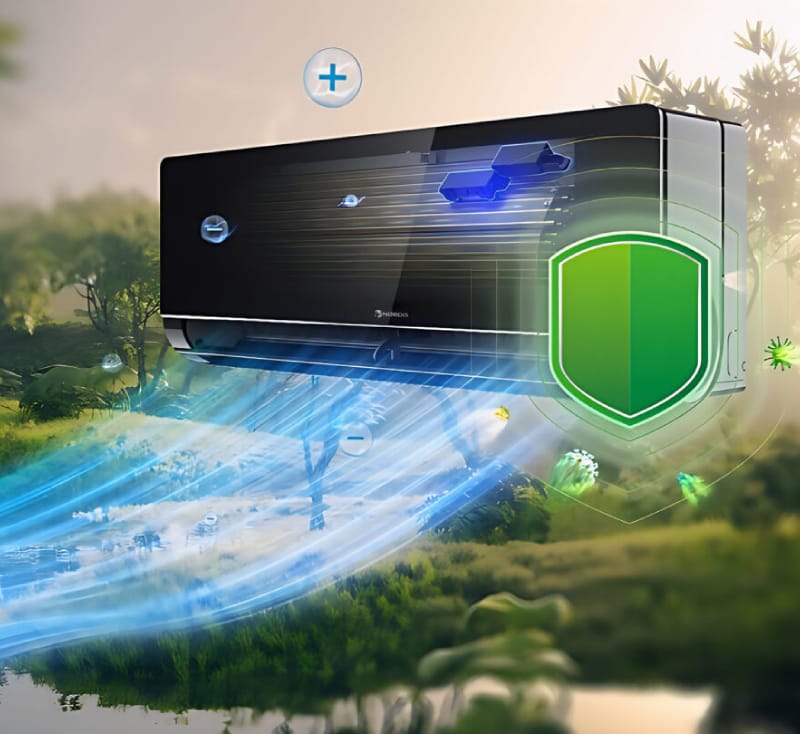 Įrenginyje įdiegtas oro jonizatorius ir UVC šviesa, kurie padeda valyti ir dezinfekuoti orą. Jonai neutralizuoja bakterijas, virusus ir nemalonius kvapus, o UVC technologija ardo mikroorganizmų struktūrą ir neleidžia jiems daugintis.