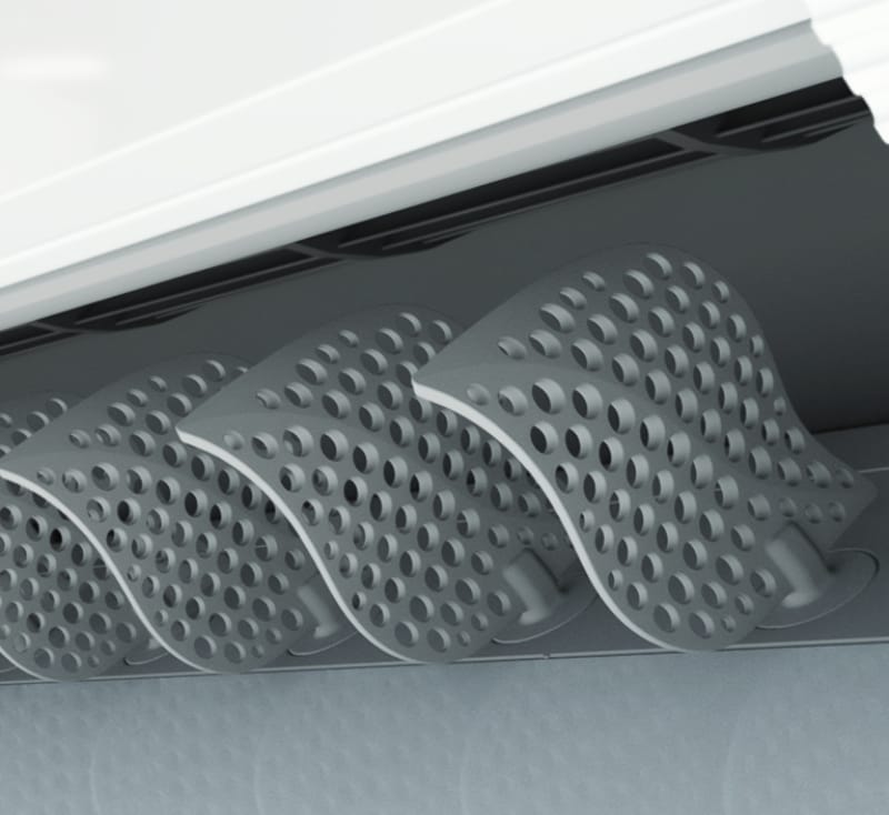 Naujos kartos oro srauto nukreipimo mentelės su mikroskylutėmis leidžia mėgautis švelniu ir tolygiai paskirstytu šalto oro srautu, tuo pačiu neprarandant vėsinimo efektyvumo.