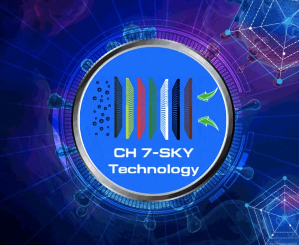 Unikalios „CH 7-SKY“ technologijos privalumas yra tas, kad nereikia atskirai rinktis vieno ar kito filtro – ši sistema suteikia vientisą apsaugą nuo visų žinomų buitinių teršalų, užtikrindama švarų ir sveiką orą patalpose.