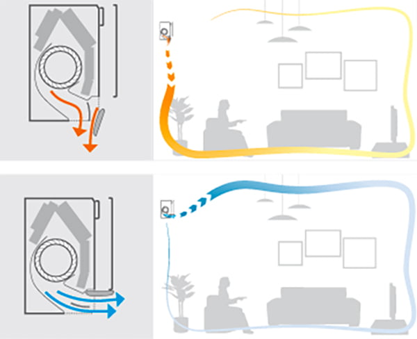 Mėgaukitės išskirtiniu komfortu namuose su Koanda efektu, kuris optimizuoja oro srautą, kad temperatūra būtų tolygiai paskirstyta visame kambaryje. Šildymo režimu oro srovės sklendės nukreipia šiltą orą žemyn, o vėsinimo režimu – nukreipia jį aukštyn. Tai leidžia efektyviai sukurti malonų ir subalansuotą kambario klimatą.
