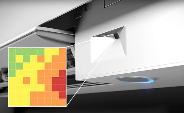 Išmanusis terminis jutiklis pirmiausia išmatuoja esamą patalpos temperatūrą, o tada aktyvuoja specialų oro srauto paskirstymą. Šis mechanizmas nukreipia šiltą ar šaltą orą būtent ten, kur jo labiausiai reikia, užtikrindamas tolygų oro pasiskirstymą visoje patalpoje.