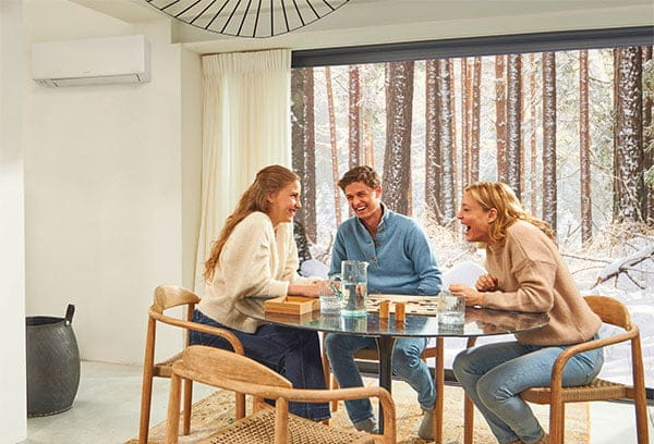 "Daikin" įranga suprojektuota taip, kad būtų šilta net šalčiausiomis žiemomis. Nordic Perfera šilumos siurblys oras-oras tobulai tinka mūsų regionui, nes gali efektyviai šildyti iki -30°C.