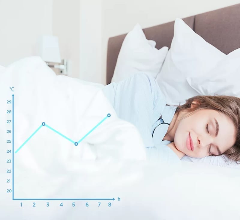 Norėdami pasiekti maksimalų komfortą, naudokite miego mygtuką. Šis režimas automatiškai reguliuoja temperatūrą naktį, kad atitiktų natūralų jūsų kūno miego ciklą.