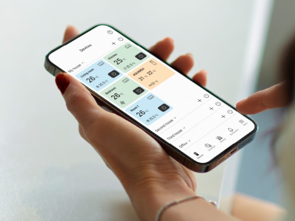 Važiuojant į namus ar kitas patalpas, kur yra sumontuotas įrenginys, Jūs galite iš anksto nustatyti norimą temperatūrą, o grįžus mėgautis malonia vėsa ar šiluma. Tai ypač aktualu sodybų savininkams, nes atvykus žiemą nebereikės kūrenti židinio ir laukti, kol patalpa sušils.