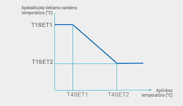Naudojant temperatūrinės kreivės funkciją, šilumos siurblio (ŠS) ruošiamo vandens temperatūra automatiškai pasikeis keičiantis lauko oro temperatūrai. Kai lauko oro temperatūra kyla, šildymo apkrova mažėja, todėl ŠS ruošiamo vandens temperatūra automatiškai žemėja ir atvirkščiai – lauko oro temperatūrai krentant, kyla ŠS ruošiamo vandens temperatūra. Iš viso yra 32 fiksuotos (16 šildymo ir 16 vėsinimo) ir dvi (1 šildymo ir 1 vėsinimo) vartotojo nustatomos temperatūrinės kreivės, tenkinančios įvairius komforto poreikius.