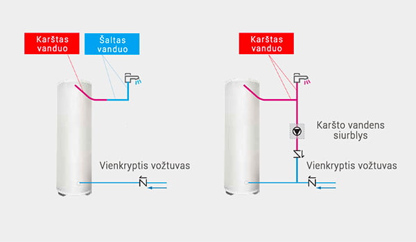 Karšto vandens recirkuliacijos funkcija naudojama vandeniui iš vamzdyno grąžinti į karšto vandens rezervuarą pagal nustatytą laikmatį. Vienai dienai galima nustatyti iš viso 12 laikmačių, kurie aktyvuoja karšto vandens recirkuliacijos siurblį pagal vartotojo nusistovėjusius kasdienius poreikius. Tokiu būdu garantuojamas momentinis karšto vandens tiekimas.