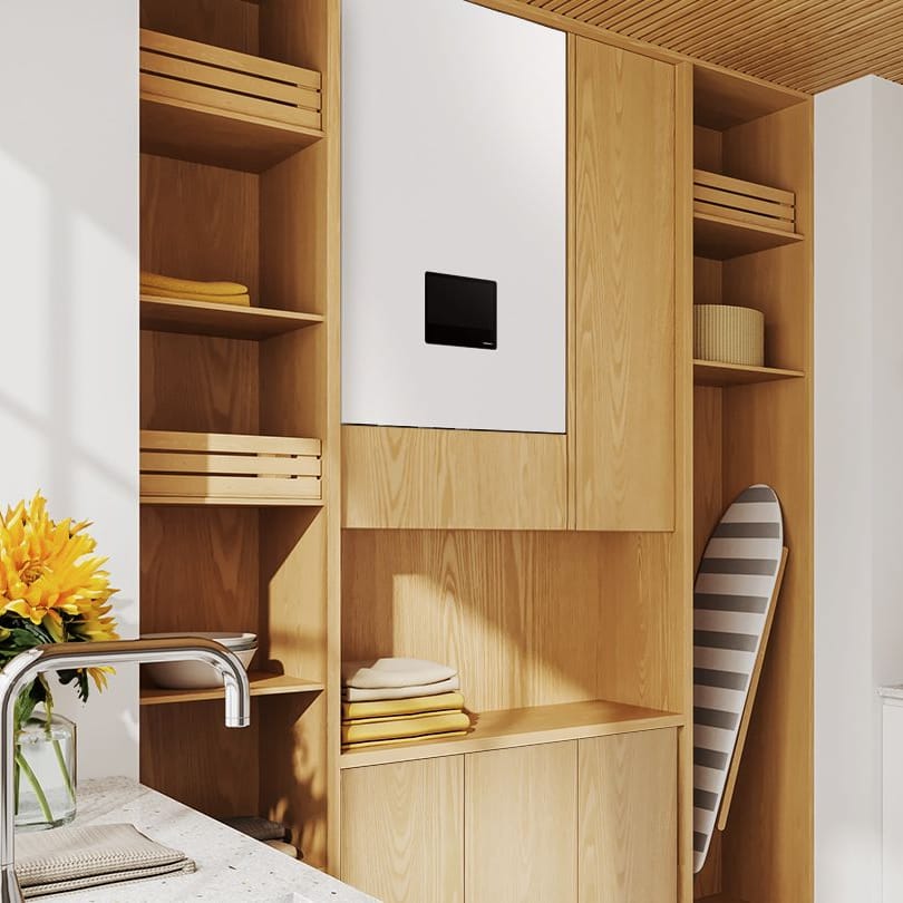 Naujasis EHS Hydro modulis yra paprastas ir patikimas sprendimas šildymui ir buitinio karšto vandens ruošimui, naudojamas kartu su papildomai prijungiamu boileriu (karšto vandens talpa). Sieninis modelis yra 350 mm gylio, todėl jį galima montuoti greta kitų sieninių spintelių.